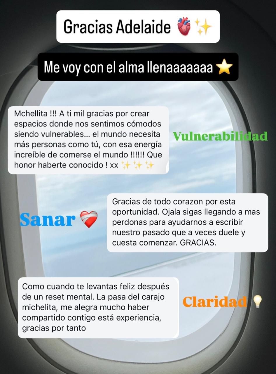 Este es un espacio para entablar una conversación de corazón a corazón con las diferentes versiones de nuestra historia. La versión de nosotros que llegó acá, la que estamos construyendo y finalmente la que soñamos con alcanzar! Podremos plasmar en el papel experiencias, aprendizajes, miedos e ilusiones y lo mejor de todo, conectaremos con otras historias humanas, migrantes también, que nos inspirarán y nos darán perspectiva. La intención principal de esta experiencia es activar tu inspiración, que conectes con la comunidad pero sobretodo que conectes con la verdad de tu corazón ⚡️